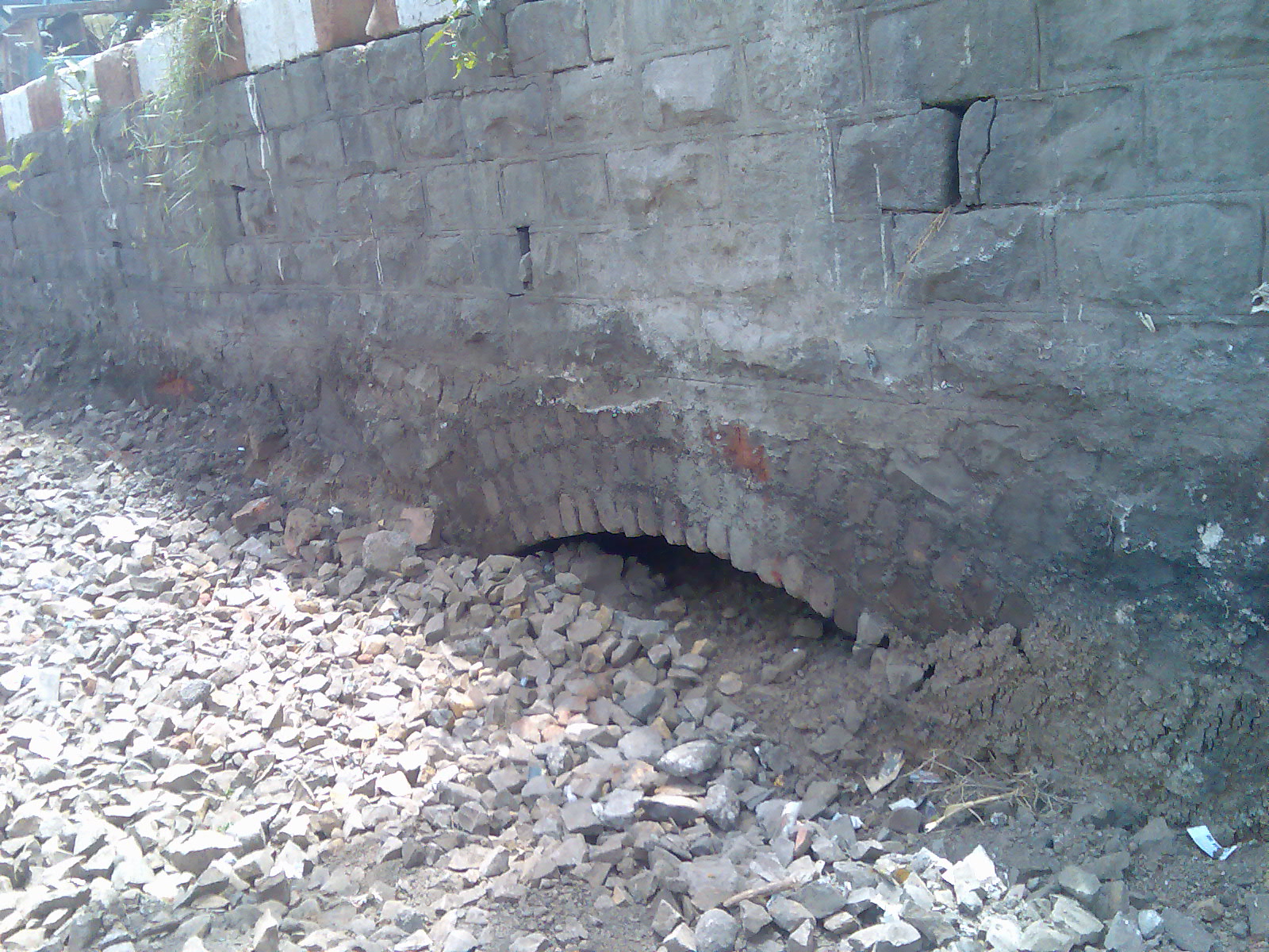 I don't think it is just a drain…the way the bricks are laid out, it has to be an archway to something. I've studied a bit on the subject so I'm hazarding a guess here. Drains would not have elaborate brickwork like this – this one was used generally over openings to hold the weight of the masonry above.