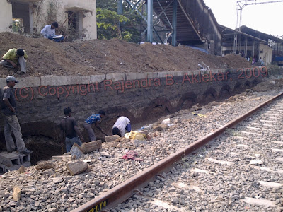 A stunning find to announce. The Central Railway is building two new tracks between Kurla and Thane stations to decongest the suburban railway network in Mumbai. They have cleared the space of all weeds and whatever was lying there to flatten it up to lay the new tracks. During the process, it has been found by me that the old Bhandup station’s stone platform has a row of arches under it. There are about 20 or more continuous row of arches under the platform.