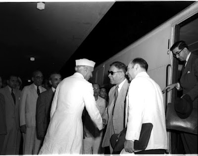 The Prime Minister of India Shri Jawaharlal Nehru receiving His royal Highness Marshal Shah Mahmoud Khan Prime Minister of Afghanistan, on the latters’ arrival at New Delhi Railway Station, on September 4, 1951.