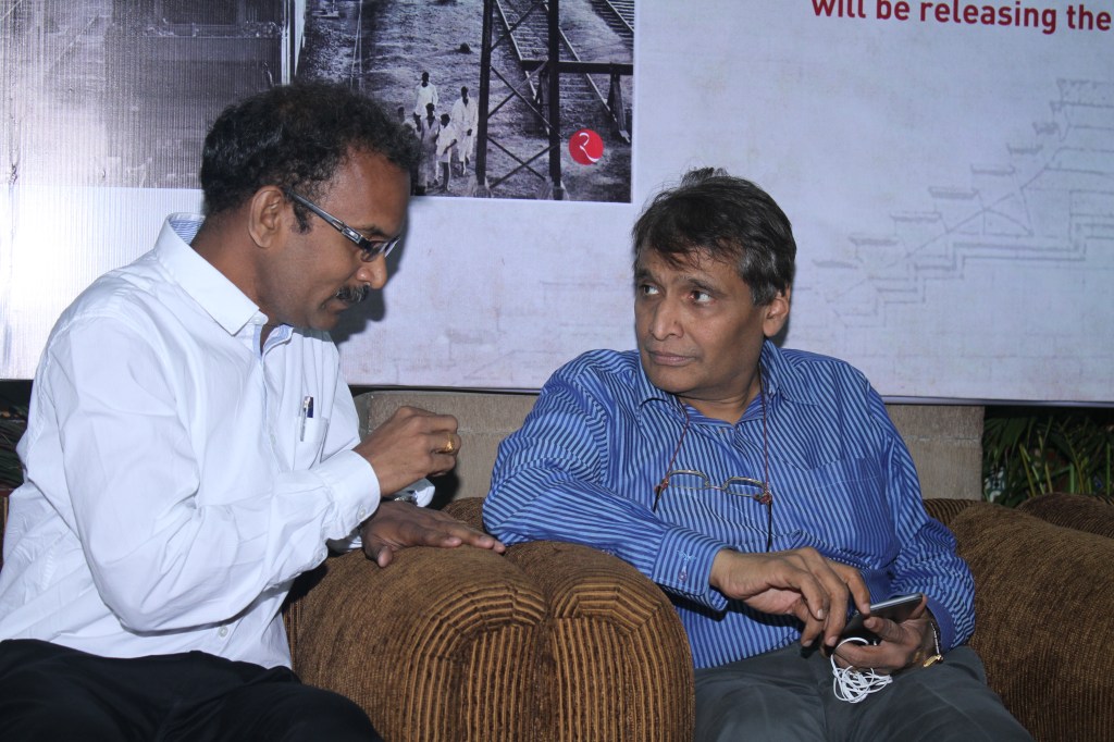 Explaining the theme of my first book to Railway Minister Suresh Prabhu before the launch.